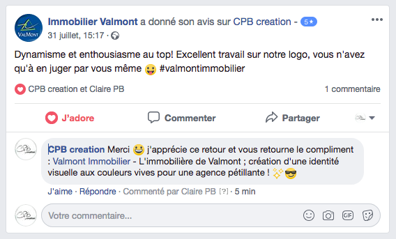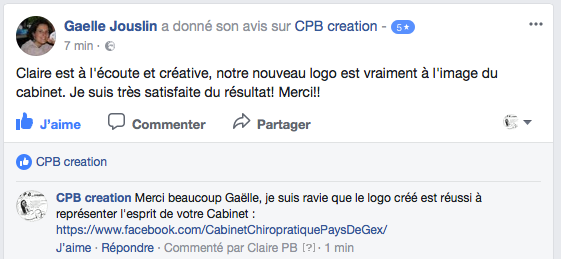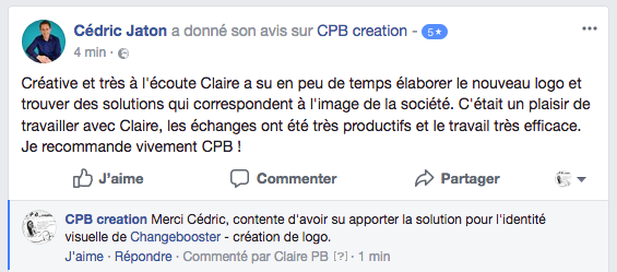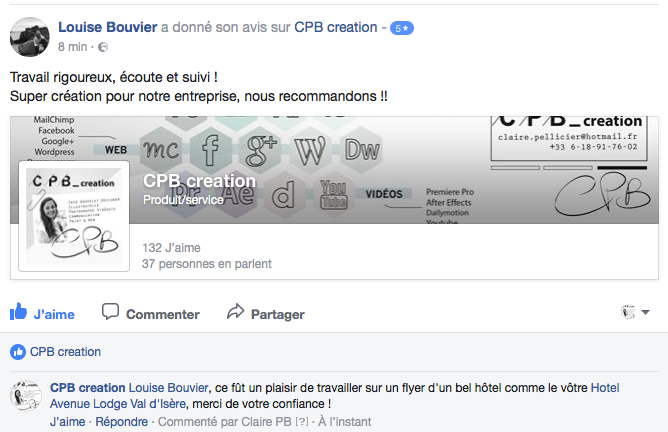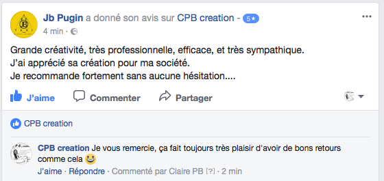 AVIS CLIENTS Vous trouvez ci-dessous quelques avis que certains de mes clients m’ont laissés sur ma Page Facebook Entreprise CPB creation :